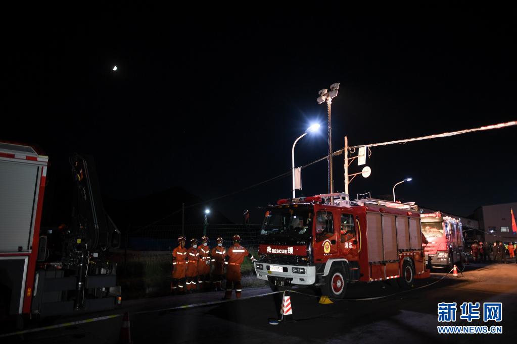 8月14日,青海省海北藏族自治州刚察县西海煤炭公司柴达尔煤矿,消防队员在矿区集结。新华社记者 吴刚 摄