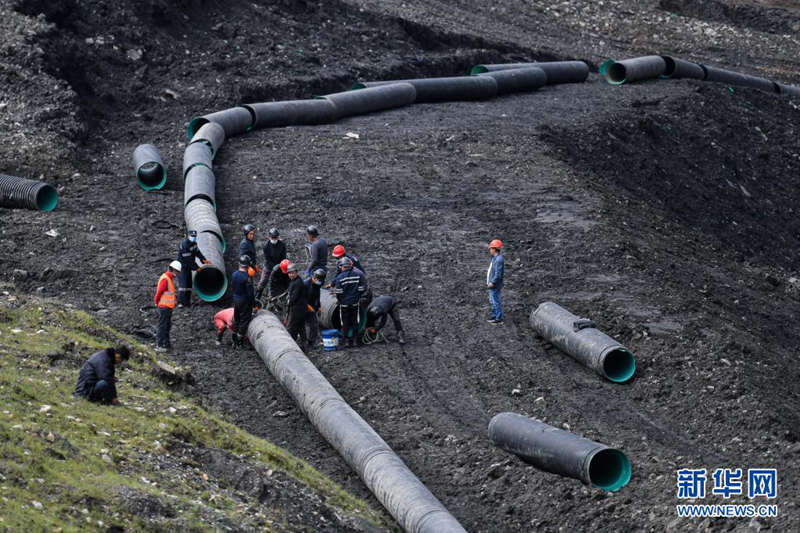??????8月16日,救援人员在青海柴达尔煤矿冒顶事故救援现场铺设排水管道。新华社记者 吴刚 摄